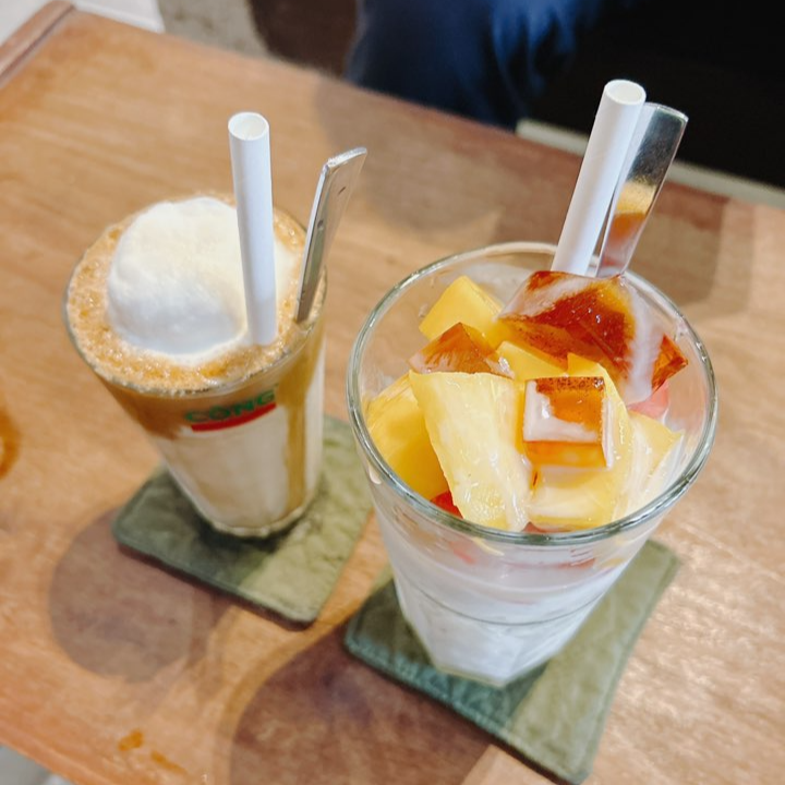 특히 더운 베트남 날씨에 맞춰 대부분 아이스 형태로 제공되기 때문에 시원함이 강하게 느껴집니다. 커피 특유의 쌉싸름함보다는 디저트 음료에 가까운 느낌이라 커피를 잘 마시지 못하는 사람도 부담 없이 즐길 수 있습니다. 처음 콩카페를 방문한 여행자라면 메뉴 선택에 고민할 필요 없이 가장 먼저 주문해도 후회가 적은 선택지입니다.
